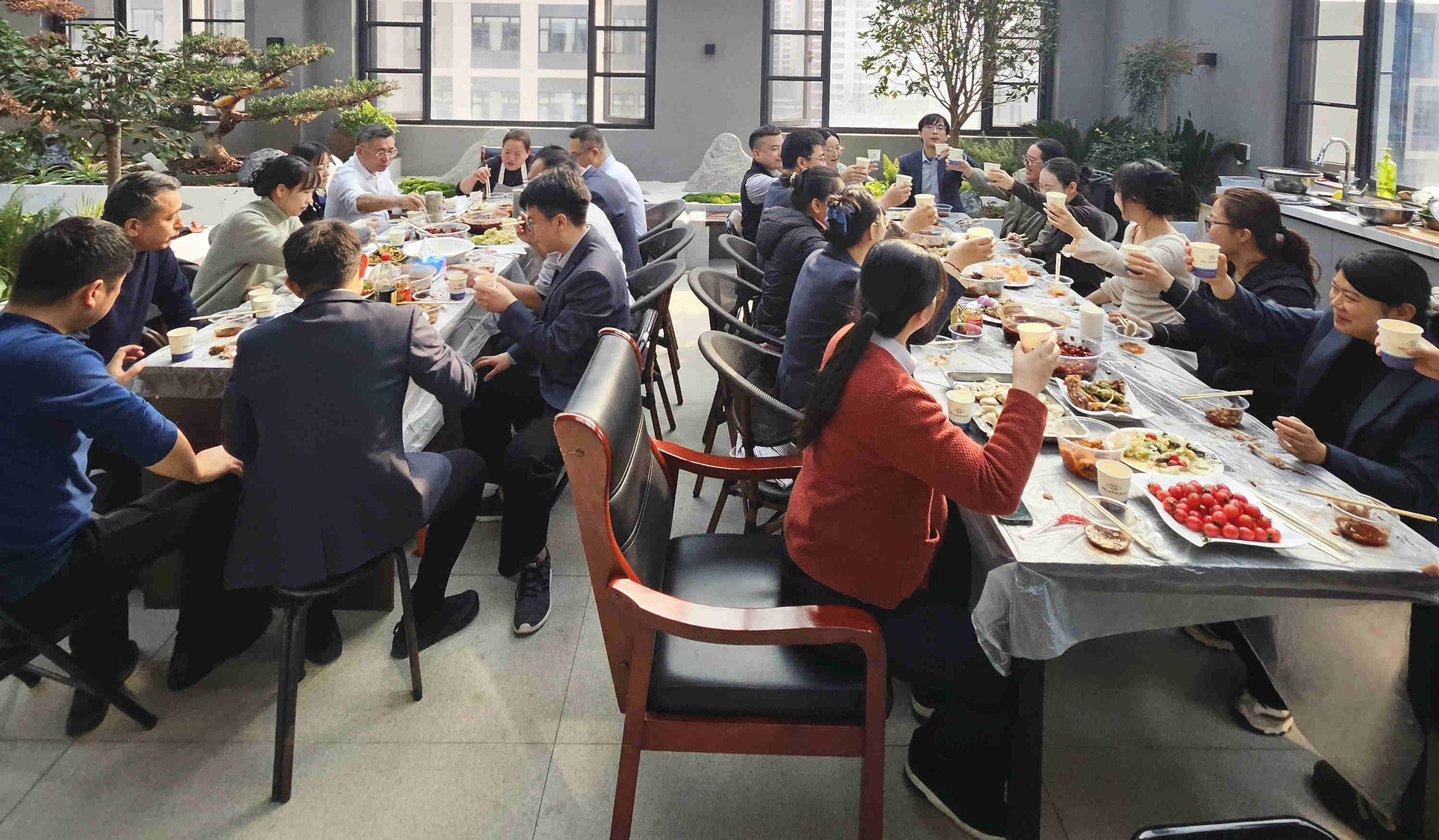 清水飄芙蓉,元寶落玉盤(pán)。熱氣騰騰的餃子陸續(xù)出鍋,誘人的香氣彌漫開(kāi)來(lái)。員工們圍坐在一起,品嘗著親手制作的美味成果,醋香、辣油各取所愛(ài),咬一口餃子,暖意從舌尖直達(dá)心底,瞬間驅(qū)散了冬日的寒意。大家一邊享用美食,一邊分享工作趣事,這一刻,忙碌的工作壓力煙消云散,取而代之的是節(jié)日的喜悅和滿(mǎn)滿(mǎn)的歸屬感。